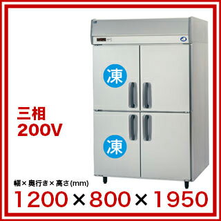 ●外形寸法:W1200×D800×H1950mm※2●内形寸法:(冷凍室)W515×D700×H1450mm(冷蔵室)W515×D700×H1450mm●定格内容積:1026L(冷凍室:513L/冷蔵室:513L)●材質:[側面・前面]ステンレス鋼板[天面・底面・後面]亜鉛メッキ鋼板[扉]表:ステンレス鋼板/裏:ABS樹脂[内装]ステンレス鋼板●温度設定範囲:[冷凍室]-25℃〜-15℃[冷蔵室]-6℃〜12℃●凝縮器:フィンチューブ型 強制空冷式●冷媒:R134a●電源:三相200V(50/60Hz)●消費電力:[冷却時]336/336W(50/60Hz)[霜取時]636/636W(50/60Hz)●適合コンセント:接地極付3極差込み 20A 250V●付属品:網棚6枚、網棚(底用)2枚、棚受24個、排水(フレキシブル)ホース1本、取扱説明書、ねじ4本●製品質量:133kg※2 外形H寸法は台脚高さ120mm時の寸法です。