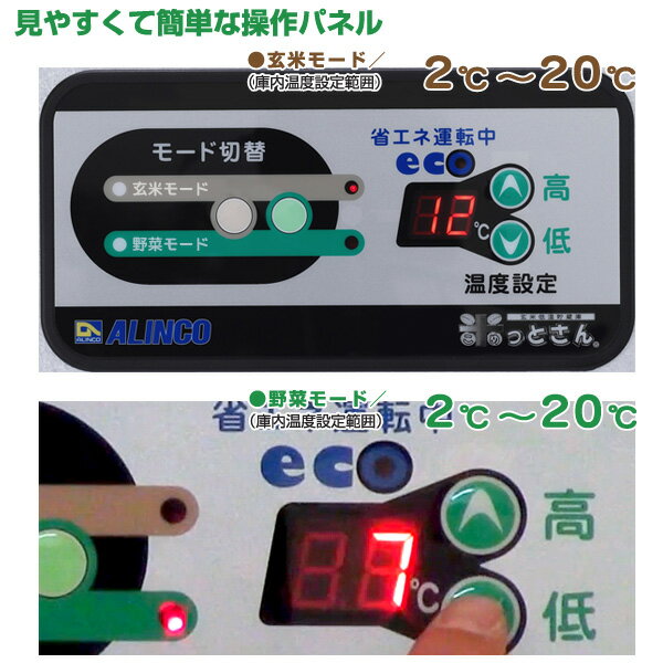 玄米モード・野菜モード共に2℃〜20℃の広い範囲の温度設定が可能。