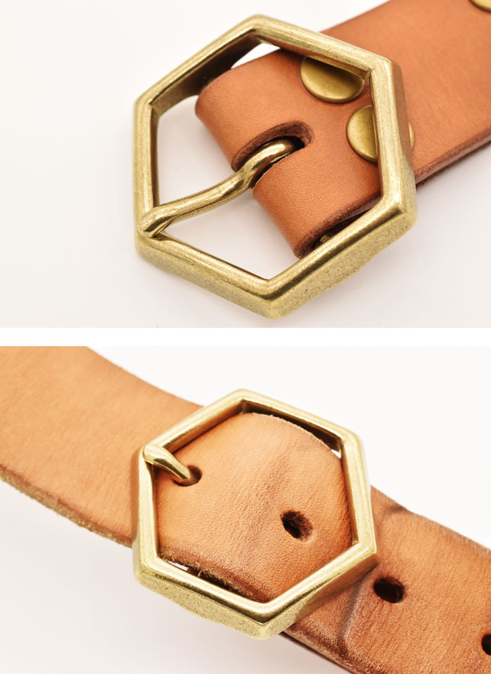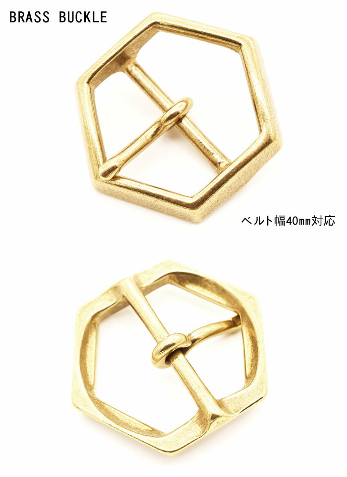 【ベルト幅40mm対応】日本製 レザーベルト用 ブラスバックル 国産 ソリッドブラス 真鍮無垢製 六角形 ヘキサゴン ハニカム バックル ベルト幅40mmまで対応【メール便可】