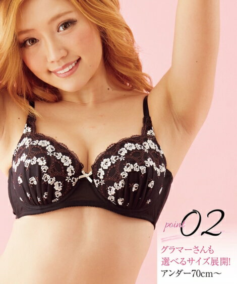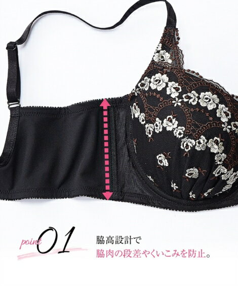 素肌に映えるブラックカラーで小花刺しゅうも可憐♪